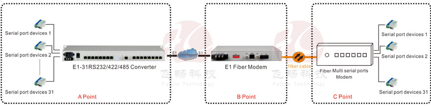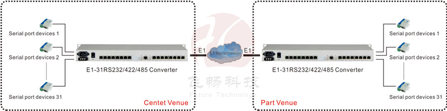 This interface converter is based on FPGA, providing 31Channel RS232/485/422 transmission on E1 interface. The product breaks through contradictions between traditional serial interface communication distance and communication rate, besides, it also can solve electromagnetic interference, ground ring interference and lightning damage. The device greatly improves reliability, security and confidentiality of data communication. It is widely used for various industrial control, process control and traffic control occasions, especially for Bank, and Power and other sectors and systems which have special requirements of electromagnetic interference environment. RS232/RS485/RS422 channel can transmit adaptable serial data asynchronously 0Kbps-19200Kbps baud rate.