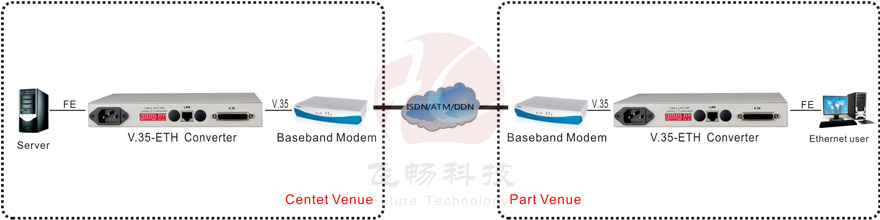 This convertor provide conversion from V.35 channel to Ethernet interface and delivers Ethernet services over existing V.35 lines V35-ETH converter provides easy conversion from V.35 channel to standard 10/100 base T Ethernet interface Can used widely in connecting between WAN and LAN monitoring etc. The Ethernet interface is 10/100Mbps auto negotiation and can be full/half duplex.