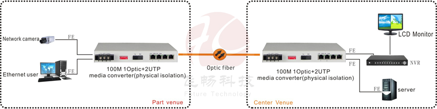 Ø 2*100 megabit Ethernet channel, complete physical isolation. The same circuit optical fiber transmission of 2 group network
