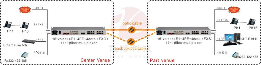 Voice Over Fiber/E1 Voice Over E1 Series Voice Over Fiber Series Multi-service Voice RACK Mount Voice Modular multi-service optic multiplexer More>>