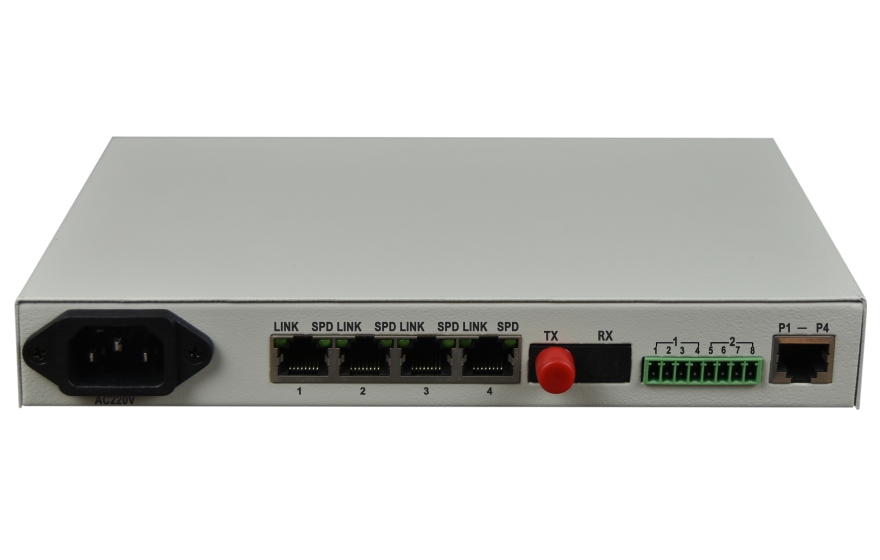 Description:The Equipment supports 4*1000M Ethernet +4*Voice+ 2*RS232/422/485/Dry contact interface to the optical fiber converter, to achieve network + telephone + serial data + Dry contact 4 type interface in the same core Optical fiber transmission,
