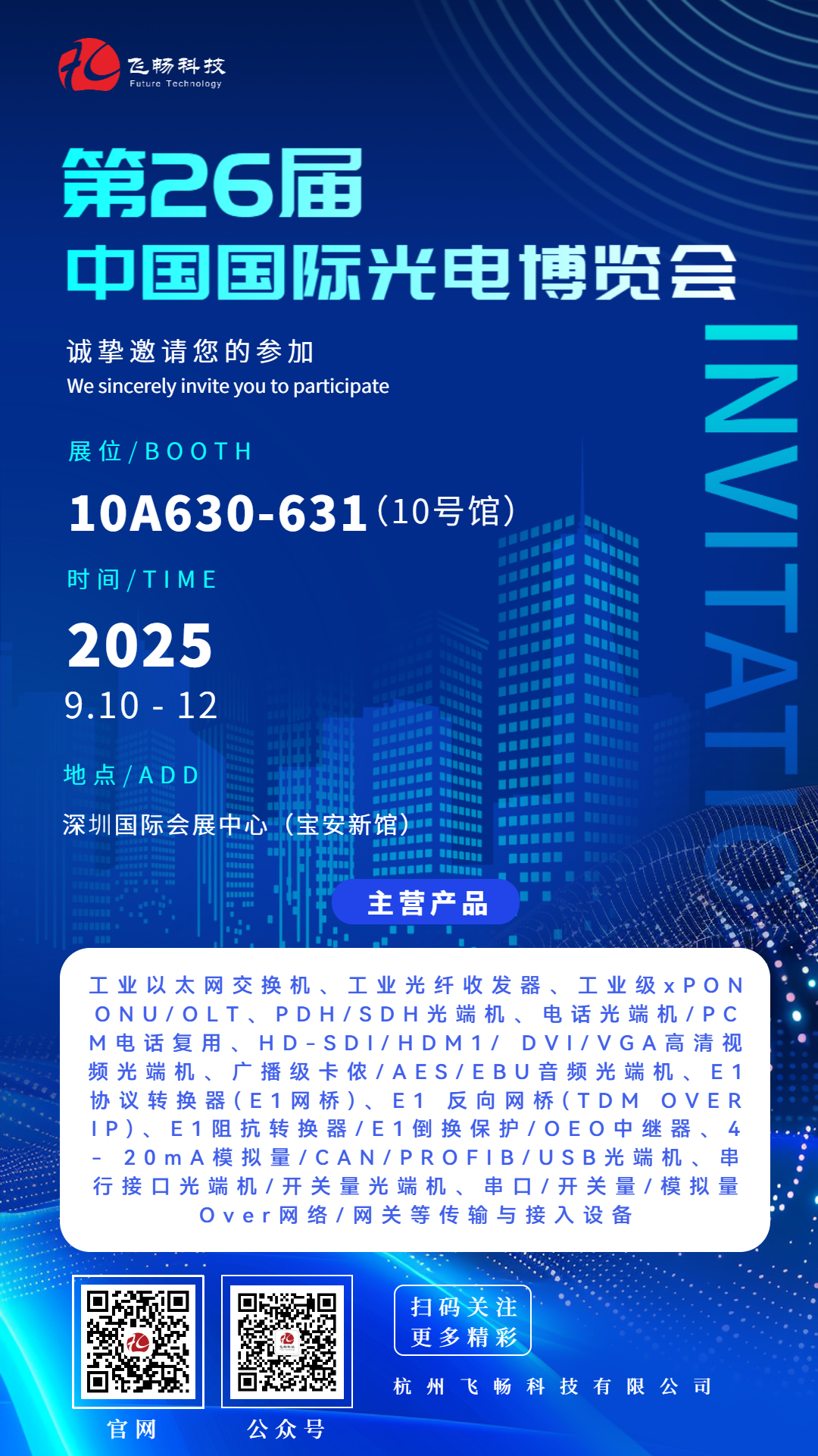 怕看产品看不懂?担心方案不匹配?别担心!展会期间,飞畅科技的技术骨干与业务顾问将全程在展台驻守。您可以带着项目需求、技术疑问来交流,比如 “如何优化现有光通信链路稳定性”“工业场景下光电设备如何适配极端环境”,我们会结合案例现场拆解,帮您找到更优解。