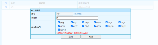 该ACL应用于一个或多个端口,该端口绑定的ACL将生效