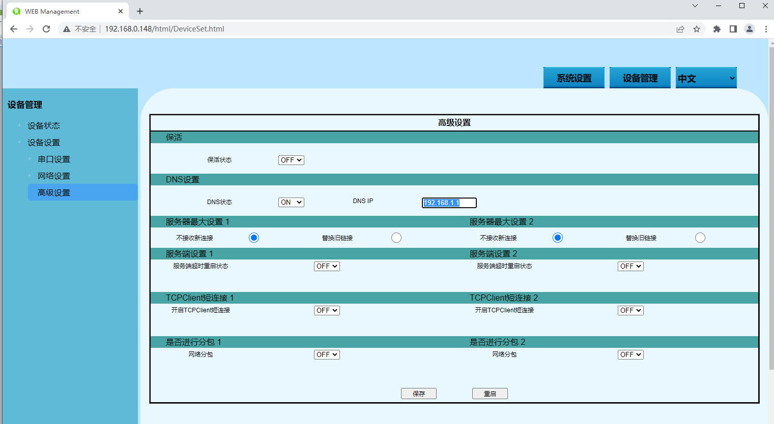 | 网关 | 填写设备网卡1的网关地址信息,默认为192.168.1.1。 |