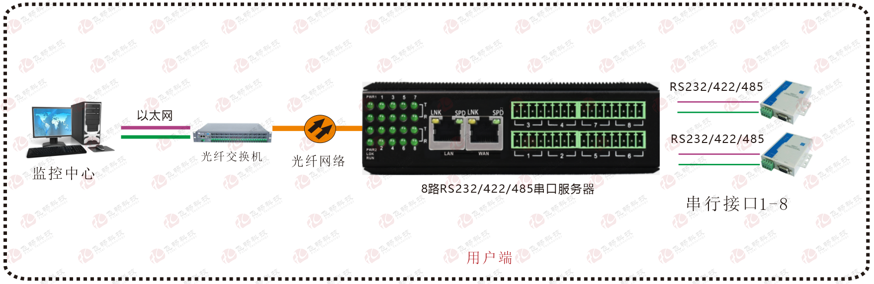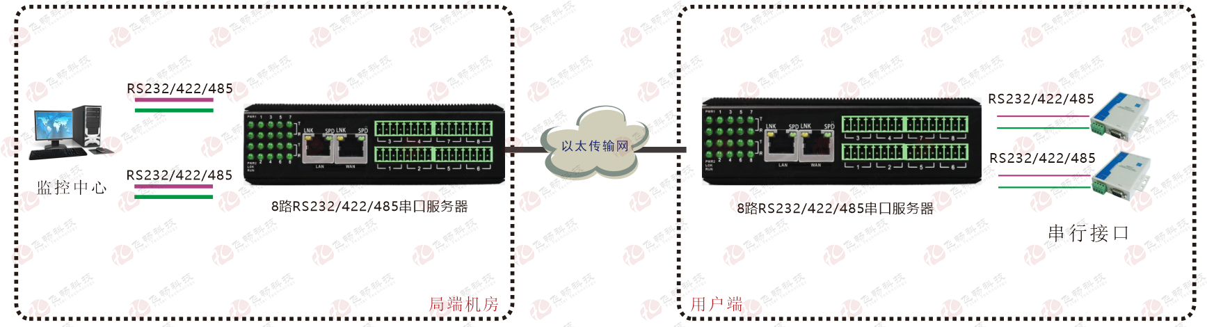 | 业务端口描述 | 8个RS232/422/485串行接口;2路百兆以太网电口 |