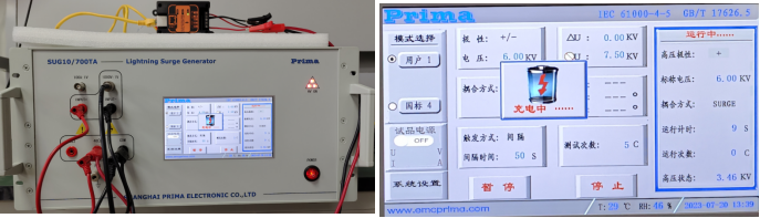 电源接口与RS485接口可过:短路电流波10/700μs,开路峰值输出电压6KV,内阻40欧的雷击测试