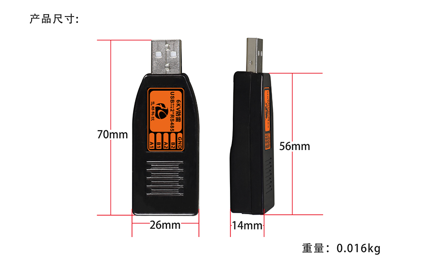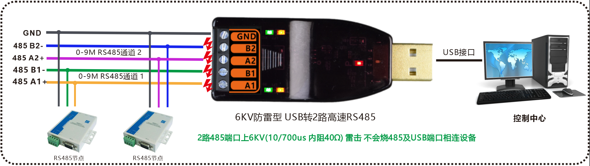 工业级 6KV防雷型 USB转2路高速RS485转换器