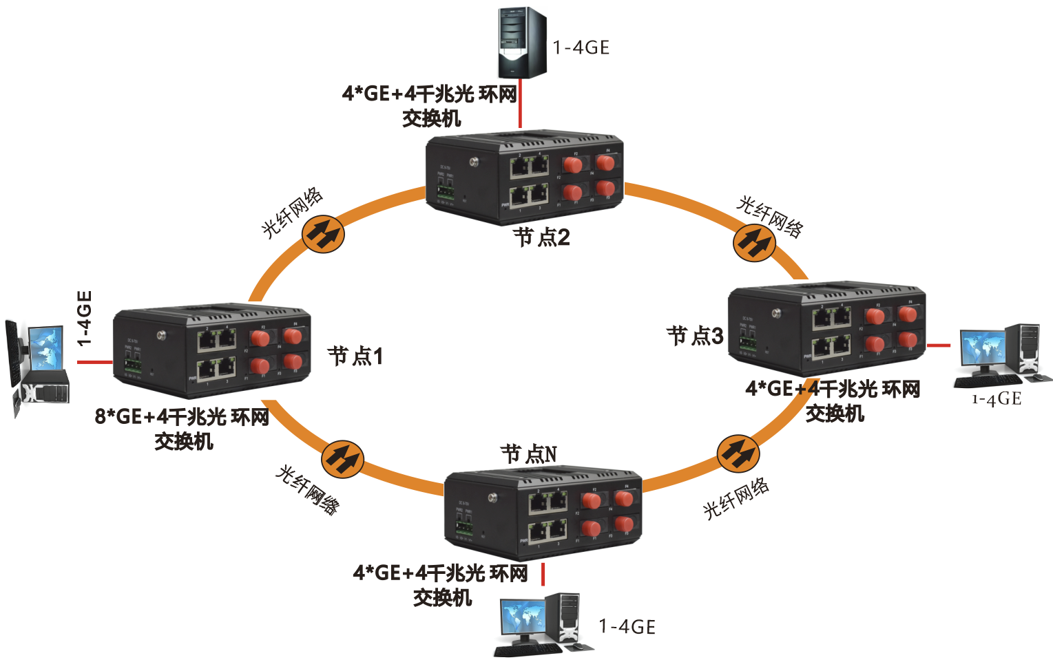 | 端口数 | 4个10/100/1000M RJ45电口、4个100M/1000M 固定光接口 |