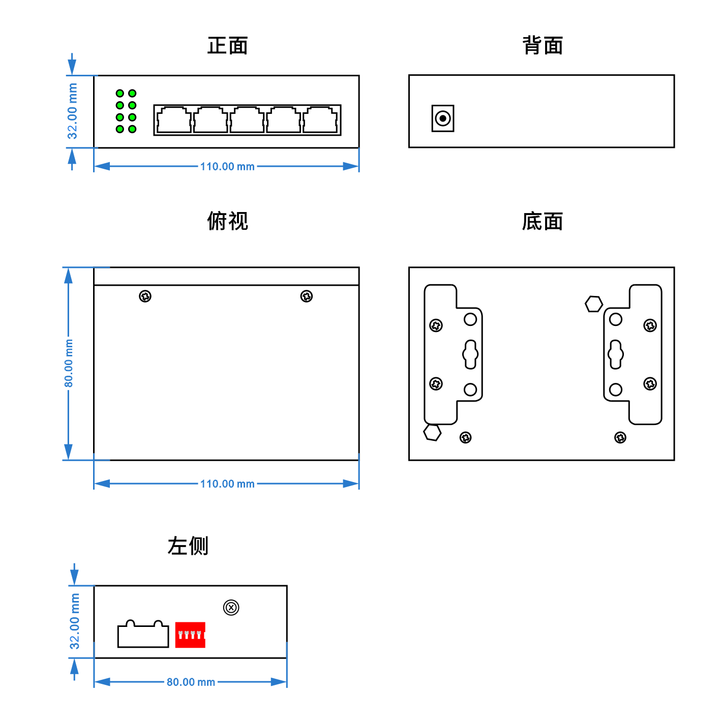 本系列产品是工业级5口10/100/1000Base-T交换机,具备完善的告警功能,整机工作稳定可靠,功耗低,集成度高,体积小,可以壁挂式。