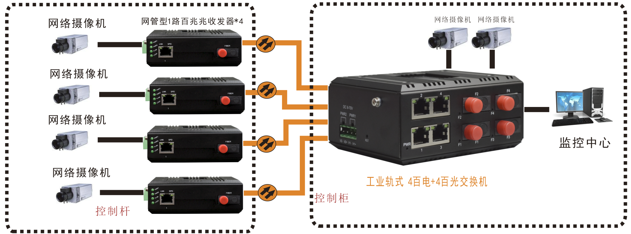 ◆ 提供4路百兆以太网电口,4个百兆以太光接口;